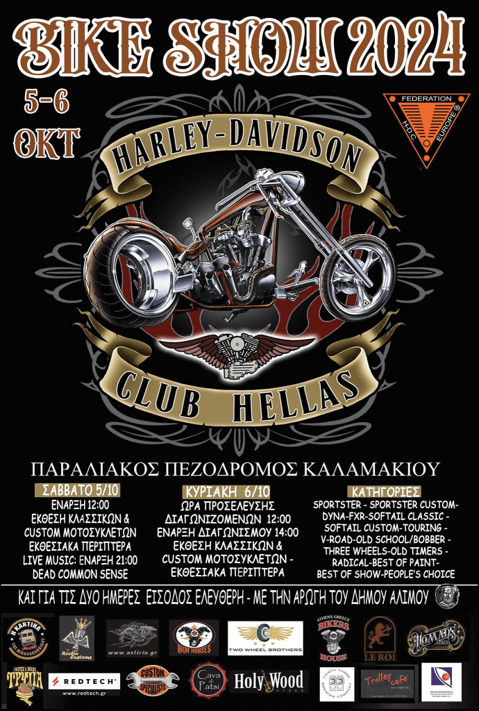 Το Bike Show είναι ένας θεσμός που διεξάγεται κάθε χρόνο και περιλαμβάνει έκθεση κλασικών και custom μοτοσυκλετών, διαγωνισμό για την ανάδειξη της πιο όμορφης μοτοσυκλέτας Harley Davidson διαφόρων κατηγοριών και φυσικά άφθονο κέφι και μουσική.