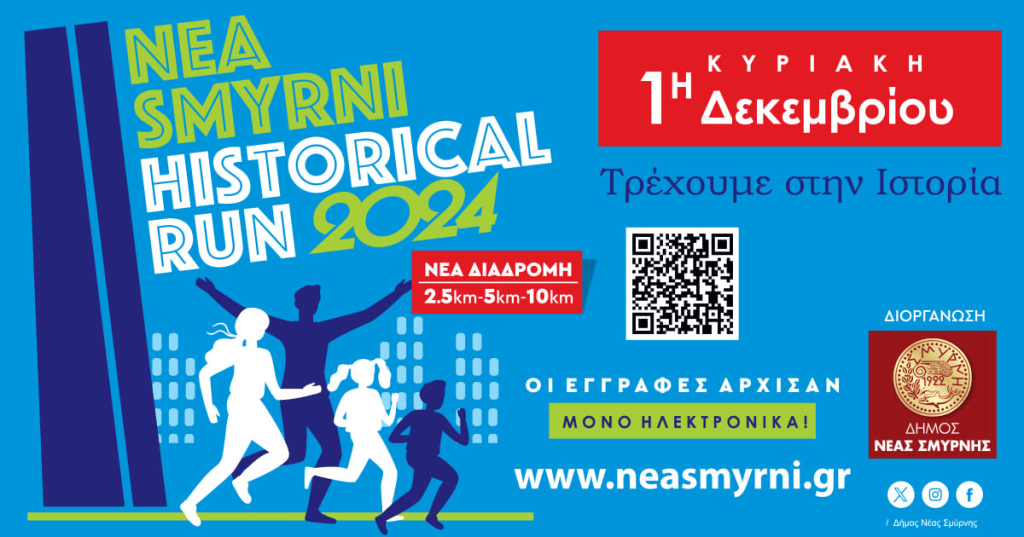 Την Κυριακή 1 Δεκεμβρίου θα πραγματοποιηθεί στους δρόμους της Νέας Σμύρνης, ο καθιερωμένος Αγώνας Μνήμης HISTORICAL RUN 2024.