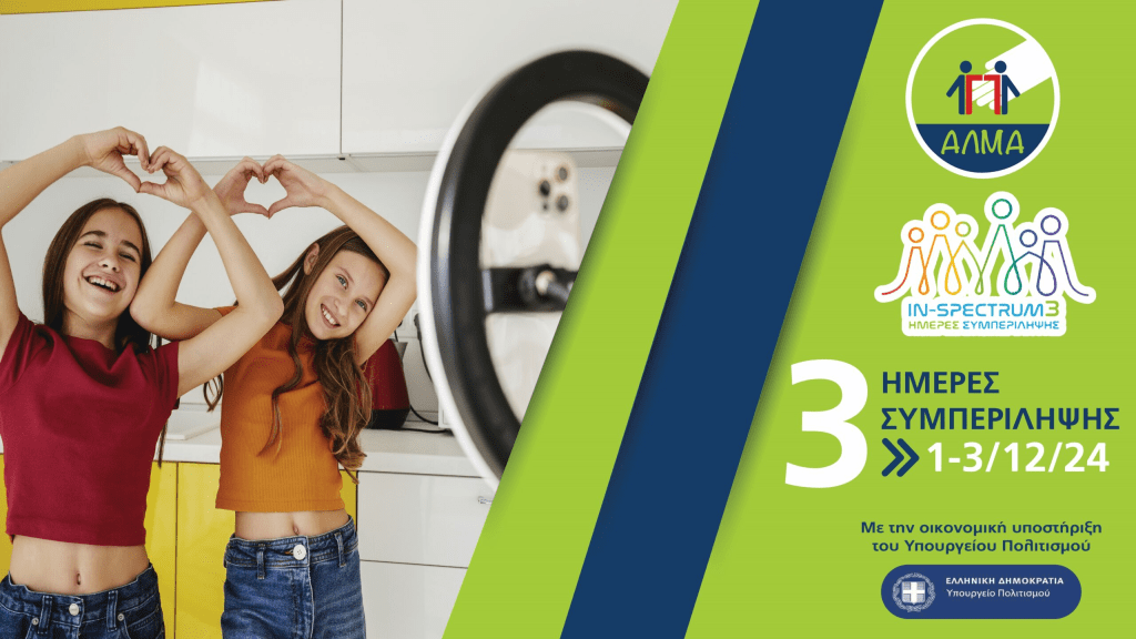 Είναι ιδιαίτερη χαρά μας να συμμετέχετε ενεργά στο φεστιβάλ IN-SPECTRUM – 3 ΗΜΕΡΕΣ ΣΥΜΠΕΡΙΛΗΨΗΣ και να ζήσουμε μαζί τρεις μοναδικές ημέρες χαράς και συμπερίληψης.»