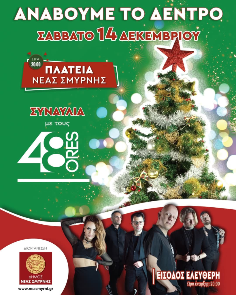 Η αρχή γίνεται το Σάββατο 14 Δεκεμβρίου ώρα 20:00 με το άναμμα του Χριστουγεννιάτικου Δέντρου, παρέα με τους 48 ORES που θα ξεσηκώσουν το κοινό με τις κεφάτες μουσικές τους.