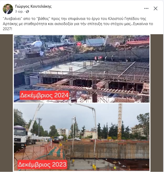 Ο Δήμαρχος Ν. Σμύρνης Γ. Κουτελάκης, σε ανάρτηση που έκανε την Κυριακή 19 Ιανουαρίου, παρουσίασε φωτογραφίες από την πρόοδο των εργασιών στο υπό ανέγερση νέο Κλειστό Γυμναστήριο της οδού Αρτάκης. Είναι κάτι που έχει ξανακάνει και παλαιότερα, αλλά η τωρινή ανάρτηση του έκρυβε και μία είδηση, αφού ο Δήμαρχος αναφέρει στο τέλος «Εγκαίνια το 2027», οριοθετώντας και επίσημα τον χρονικό ορίζοντα παράδοσης του μεγάλου αυτού έργου.