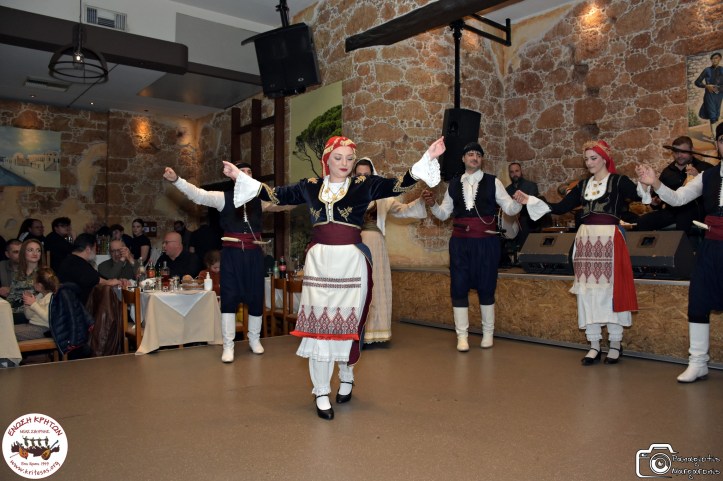 Υπό τους ήχους του μουσικού σχήματος του Γρηγόρη Σαμόλη, το γλέντι ξεκίνησε με την χορευτική ομάδα των παραδοσιακών χορών της Ένωσης, ακολούθησαν τα τμήματα αρχαρίων και προχωρημένων ενηλίκων. Το μεγαλύτερο όπως ήταν αναμενόμενο χειροκρότημα πήρε η χορευτική ομάδα των μικρών μαθητών του συλλόγου, για να ακολουθήσει η χορευτική ομάδα της Ένωσης με τις κρητικές παραδοσιακές φορεσιές.