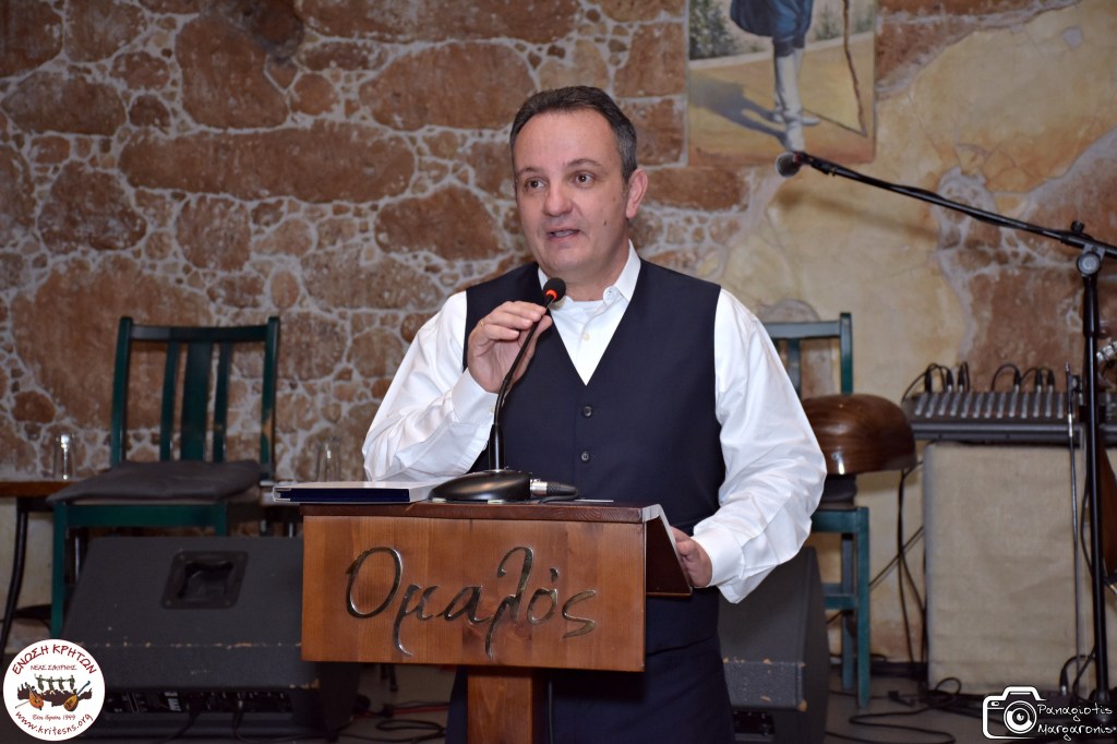 Η εκδήλωση άνοιξε με καλωσόρισμα του Γενικού Γραμματέα της Ενώσης Κρητών Ν. Σμύρνης Θανάση Τσιρίκου και ακολούθησαν χαιρετισμοί του Υπουργού Ανάπτυξης κ. Τάκη Θεοδωρικάκου, καθώς και του Δημάρχου Νέας Σμύρνης κ. Γιώργου Κουτελάκη.