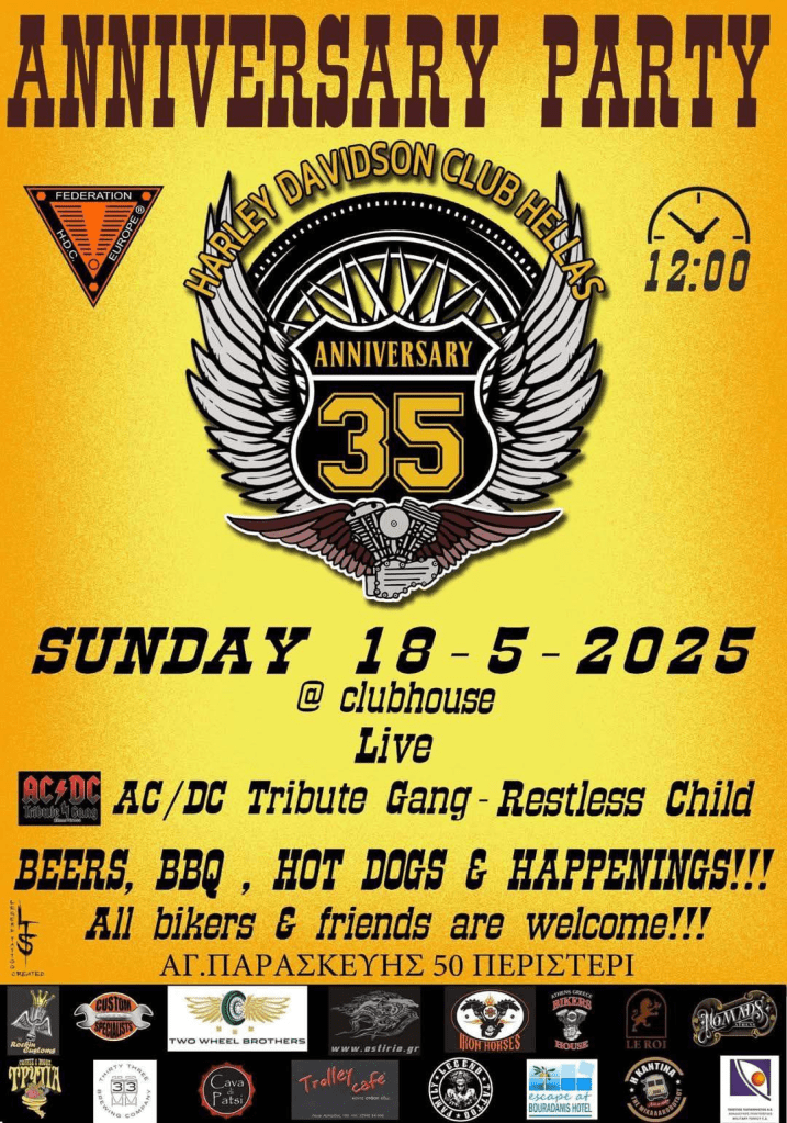 Το Harley Davidson Club Hellas, η Ελληνική Λέσχη Φίλων Μοτοσικλέτας Harley-Davidson, γιορτάζει τα 35 χρόνια από την ίδρυση της.