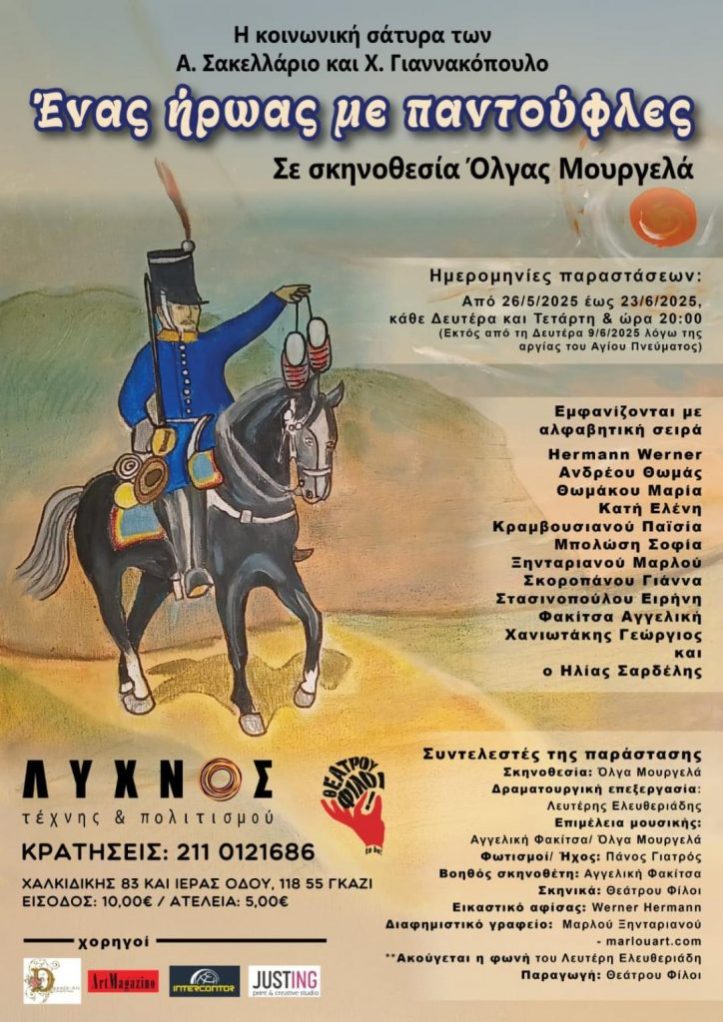 Το θεατρικό εργαστήρι «Θεάτρου Φίλοι» παρουσιάζει τη δραματική, σατυρική και κοινωνική κωμωδία «Ένας ήρωας με παντούφλες» των Α. Σακελλάριου και Χ. Γιαννακόπουλου.