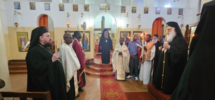 Για τα Εγκαίνια του Ναού στις 15 Ιουνίου ο Θεοφιλέστατος Επίσκοπος Μπουκόμπα κ. Χρυσόστομος προσκάλεσε τον Σεβασμιώτατο Μητροπολίτη κ. Συμεών, ο οποίος με την άδεια της Ιεράς Συνόδου και την έκθυμη συναίνεση του Πατριάρχου Αλεξανδρείας κ. Θεοδώρου μετέβη στη μακρινή Τανζανία, συνοδευόμενος από τους πατέρες Ιωάννη Αλατέλη και Νικόλαο Κουτρουμάνο και τον διάκονο π. Σπυρίδωνα Γεωργίου.