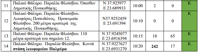 Τα σημεία δειγματοληψίας των νερών κολύμβησης για το Δήμο Παλαιού Φαλήρου είναι τα εξής: