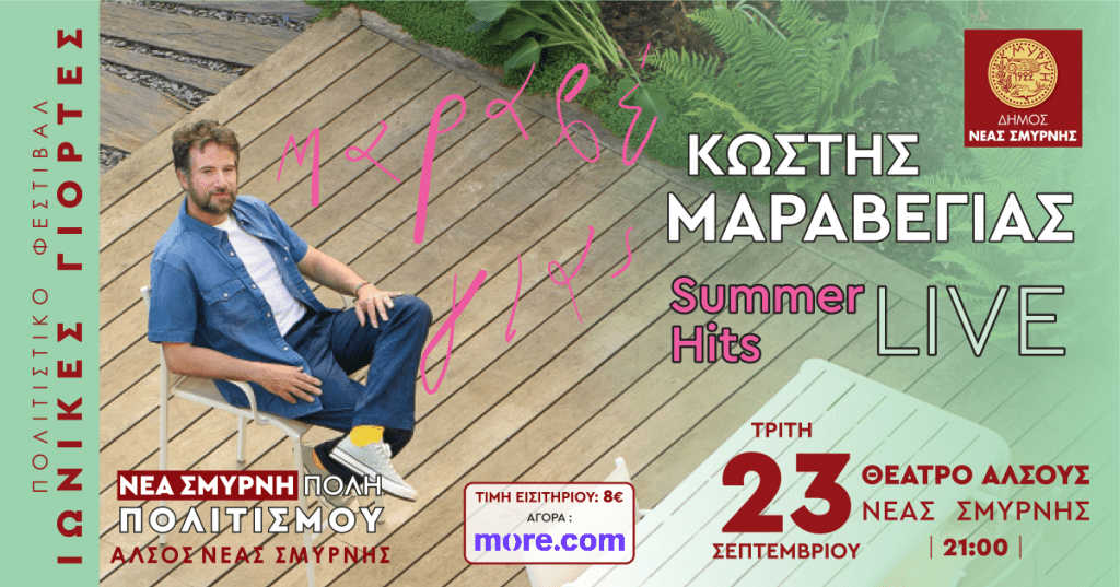 Με συναυλία του Κωστή Μαραβέγια συνεχίζονται την Τρίτη 23 Σεπτεμβρίου, στο Θέατρο Άλσους Ν. Σμύρνης, οι Ιωνικές Γιορτές.