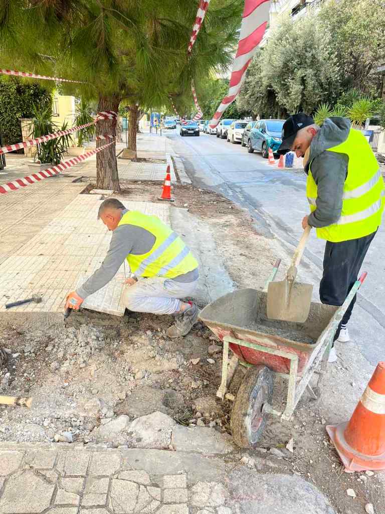 Συνεχίζονται οι εργασίες για την αποκατάσταση των φθαρμένων και κατεστραμμένων πεζοδρομίων της Νέας Σμύρνης.