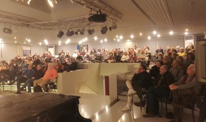 Πολίτες κάθε ηλικίας γέμισαν τον «Γαλαξία» για να παρακολουθήσουν την διάλεξη του Επίκουρου Καθηγητή στο Τμήμα Πολιτικής Επιστήμης και Ιστορίας του Παντείου Πανεπιστημίου Κωστή Καρπόζηλου με θέμα «Πρόσφυγες και Αριστερά: Μια σύνθετη σχέση». Ακολούθησε κύκλος ερωτήσεων που κράτησε αμείωτο το ενδιαφέρον του κοινού.