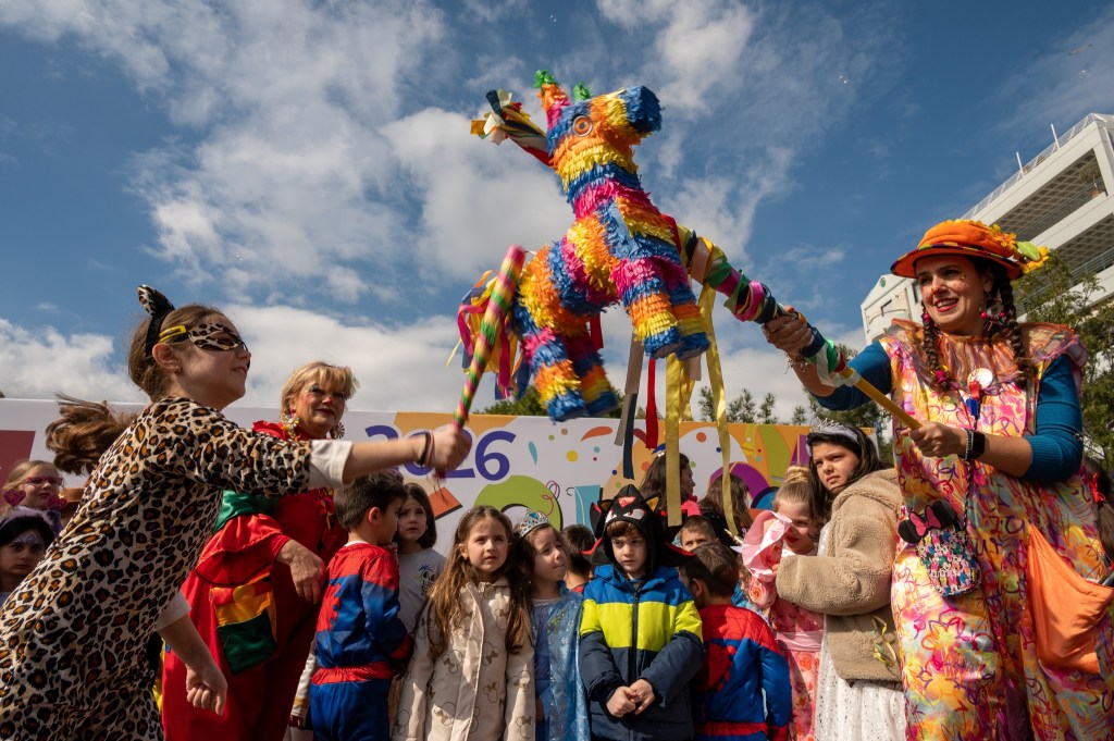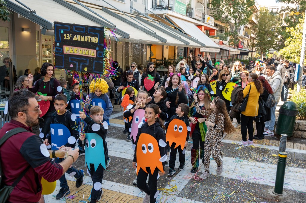 Τα παιδιά, αλλά και οι συνοδοί τους ντυμένοι με τις πιο ευφάνταστες αποκριάτικες στολές διασκέδασαν με τους μαθητές από το Εθνικό Ωδείο Νέας Σμύρνης του Ανδρέα Αργυρού και τις μαζορέτες της Σχολής Χορού της Μαρίας Σεϊτανίδου κι έπαιξαν σοκαλατοπόλεμο.