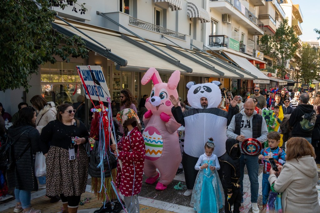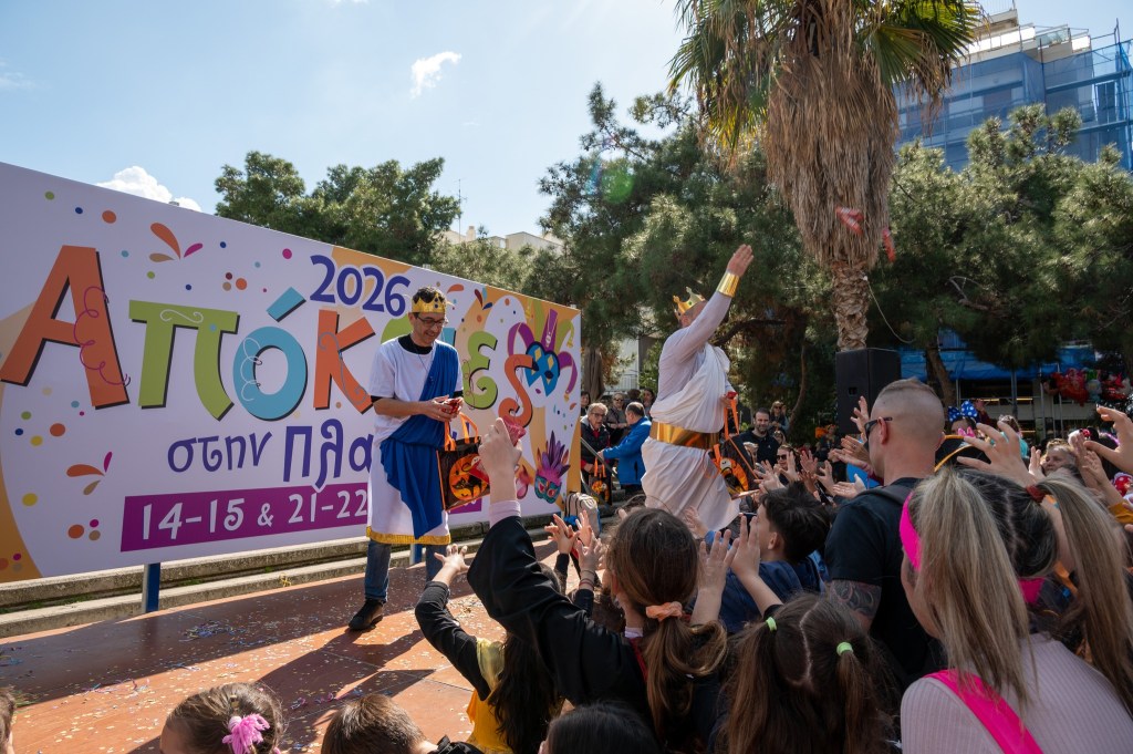 Η αρχή έγινε το πρωί του Σαββάτου 21/2 με ένα πολύχρωμο αποκριάτικο ποτάμι των μαθητών από Νηπιαγωγεία και Δημοτικά Σχολεία, να συμμετέχουν στην μία κεφάτη αποκριάτικη παρέλαση, η οποία κατέληξε στην Κεντρική Πλατεία. Εκεί, με «επίτιμους καλεσμένους» τον Μίκυ και την Μίνη τα παιδιά ξεφάντωσαν σε αποκριάτικους χορούς με τις χαβανέζες χορεύτριες να δίνουν τον ρυθμό.Παρόντες επίσης, ο τεράστιος Λαγός, το Πάντα και ο Pac-Man, που κάλεσαν τους καρναβαλιστές σ’ ένα τρελό χορό μέσα σε πανζουρλισμό από σφυρίχτρες, κομφετί και σερπαντίνες.