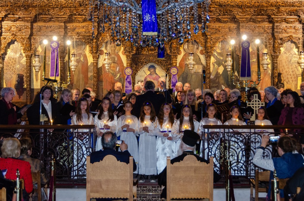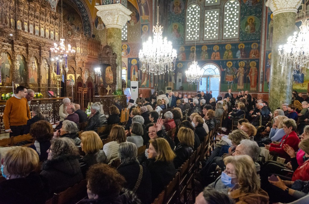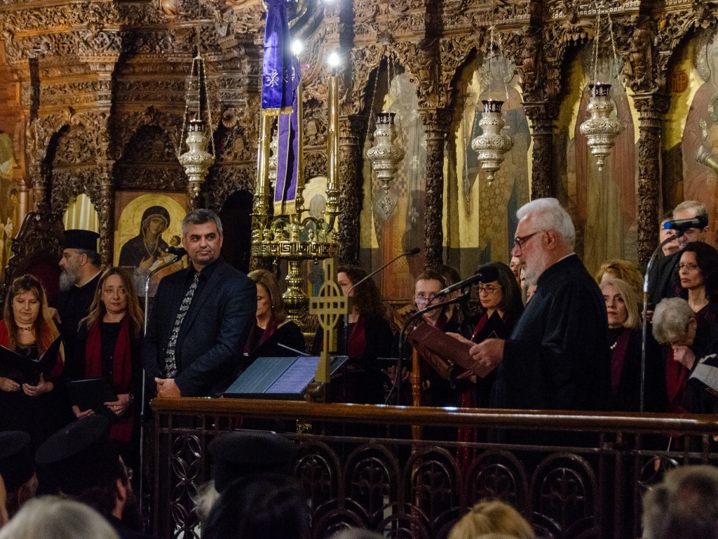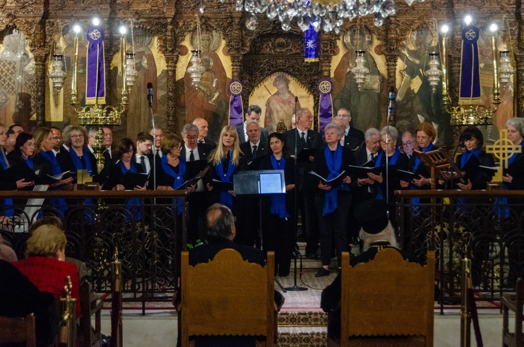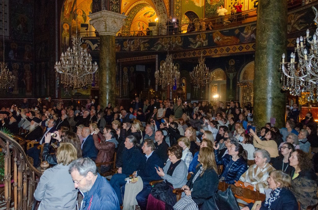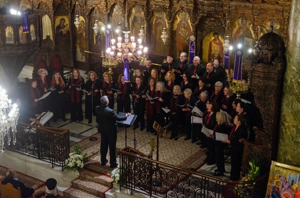 Ο χώρος της εκκλησίας γέμισε ασφυκτικά από κόσμο που συμμετείχε στους ψαλμούς των χωρωδιών. Μέσα σε υποβλητική ατμόσφαιρα οι βυζαντινοί ύμνοι, τα τροπάρια και οι ακολουθίες πλημμύρισαν την Μητρόπολη και αποδόθηκαν εξαιρετικά από την Βυζαντινή Χορωδία της Ιεράς Μητρόπολης Νέας Σμύρνης, υπό την διεύθυνση του Χοράρχη Αντωνίου Παπαδόπουλου, την Χορωδία του Δήμου Νέας Σμύρνης SMYRNA, υπό την διεύθυνση του Μαέστρου Γεωργίου Ζιάκα και την Χορωδία της Εμπορικής Τράπεζας υπό την διεύθυνση του Μαέστρου Σταύρου Μπερή.