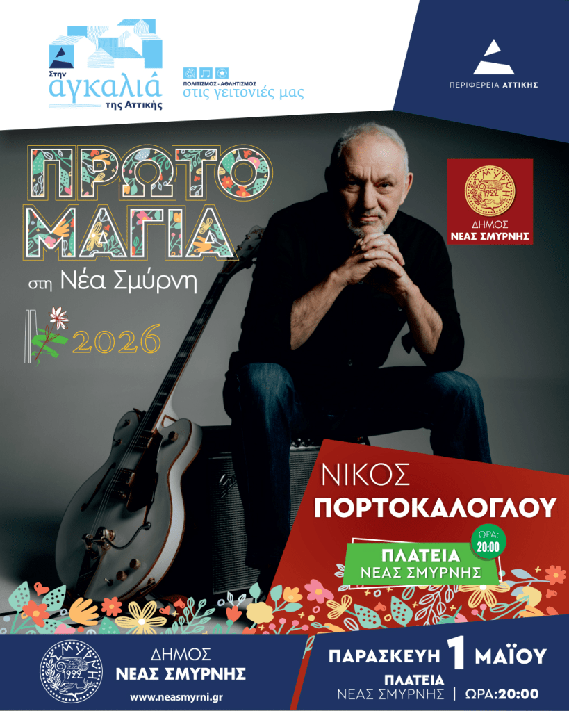 Ο Νίκος Πορτοκάλογλου επιστρέφει στη Νέα Σμύρνη, με μια μεγάλη συναυλία στο πλαίσιο των Πρωτομαγιάτικών Εκδηλώσεων 2026, η οποία διοργανώνεται από τον Δήμο Νέας Σμύρνης, με την υποστήριξη της Περιφέρειας Αττικής.
