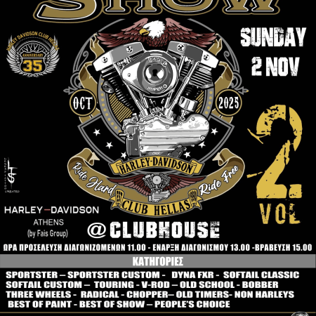 Κυριακή 2 Νοεμβρίου το Bike Show του Harley Davidson Club Hellas που είχε αναβληθεί λόγω βροχής