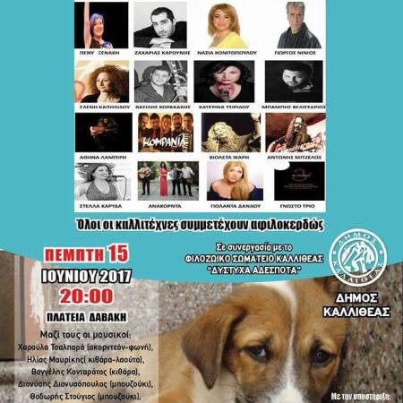 ΚΑΛΛΙΘΕΑ: Μεγάλη Συναυλία για τα Αδέσποτα 15/6/2017