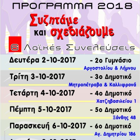 6 Λαϊκές Συνελεύσεις για το Tεχνικό Πρόγραμμα 2018