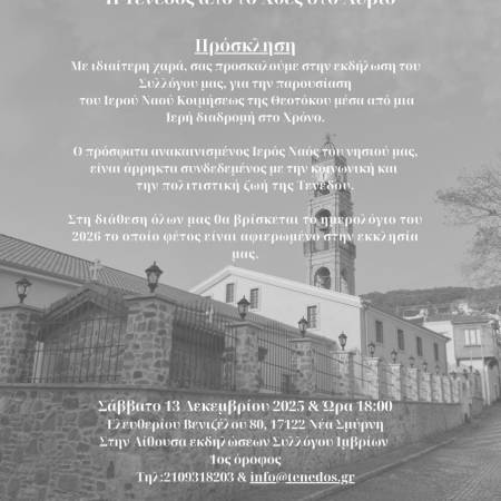 Σύλλογος Τενεδίων «Ο Τέννης»: Εκδήλωση για τον Ιερό Ναό Κοιμήσεως της Θεοτόκου – Σάββατο 13/12/2025