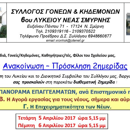 6ο Λύκειο Ν. Σμύρνης: Διαθεματική Διημερίδα