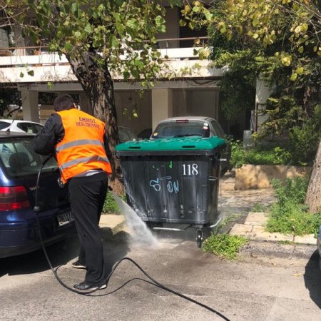 ΝΕΑ ΣΜΥΡΝΗ: Συνεχίζεται και τη Μεγάλη Εβδομάδα η πλύση κάδων & δρόμων