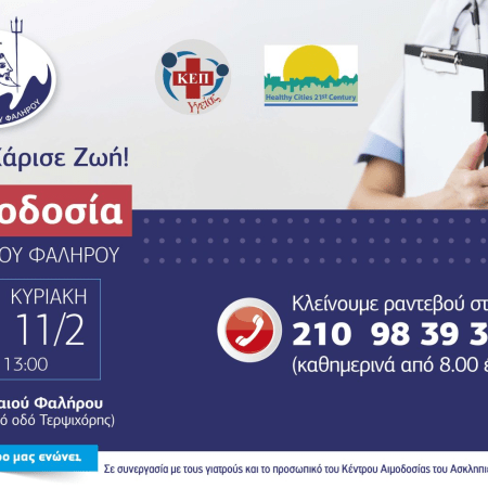 10-11 Φεβρουαρίου η 81η Εθελοντική Αιμοδοσία του Δήμου Παλαιού Φαλήρου