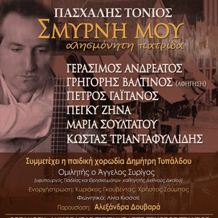 Πασχάλης Τόνιος «ΣΜΥΡΝΗ ΜΟΥ ΑΛΗΣΜΟΝΗΤΗ ΠΑΤΡΙΔΑ» 21 Μαρτίου στο Μέγαρο Μουσικής